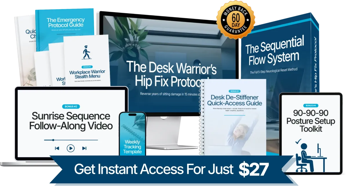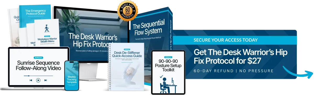 P.S. - The Desk Warrior's Hip Fix Protocol fixes what stretching, yoga, and standing desks can't—the neurological signal that's keeping your hips locked and your body stiff.