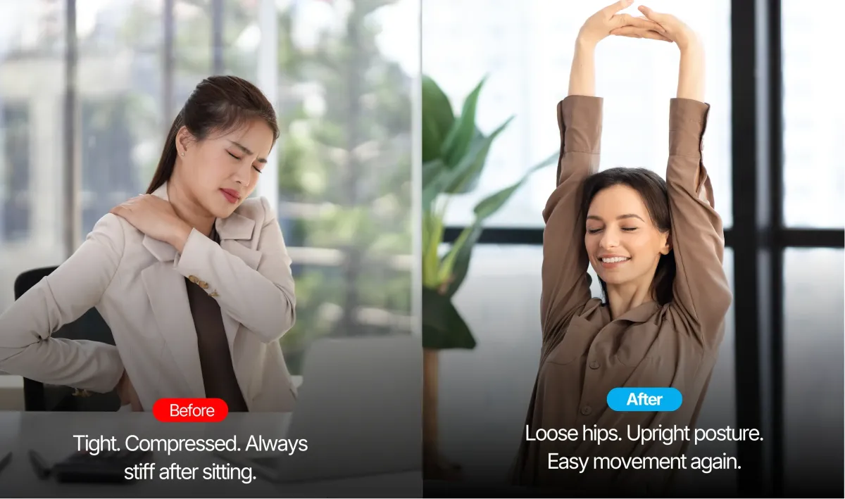 Releases stiffness and resets posture instantly—right from your desk.